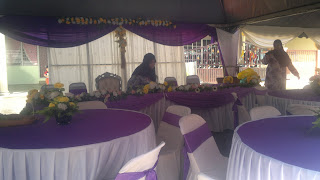 Agak lama juga TK tidak update mengenai majlis majlis perkahwinan yang TK dilantik sebagai pengurus utama persiapan luar.,khemah tetamu dan set makan dibawah khemah untuk pengantin.